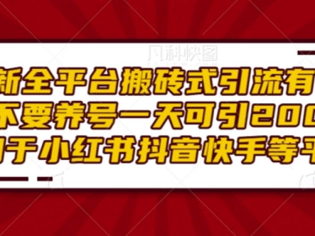 最新全平台搬砖式引流有手就行不要养号一天可引200+项目粉适用于小红书抖音快手等平台