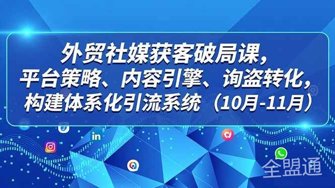 外贸 社媒获客破局课,平台策略、内容引擎、询盘转化,构建体系化引流系统(10月-11月)