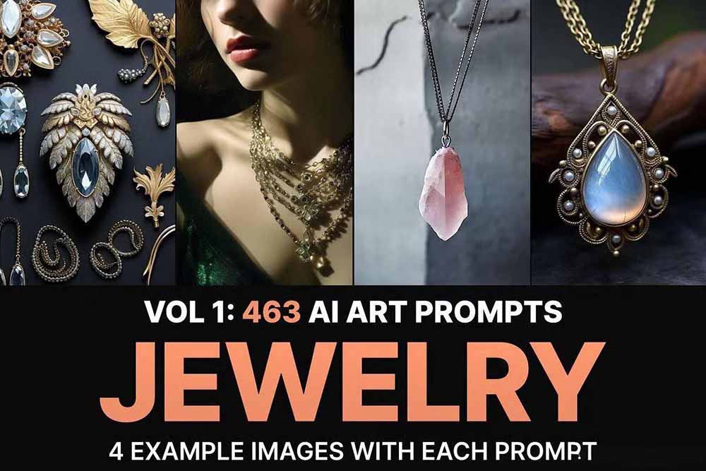 每一个提示词都包含四张已生成好的效果图,仅供参考 463个独特的珠宝提示,涵盖戒指、项链、耳环、手链、宝石和奢侈配饰 每个提示附有4张示例图片,展示预期结果 兼容包括Midjourney、DALL·在内的多个AI生成器E、Leonardo.ai、萤火虫和稳定扩散 即时下载——立即开始创作珠宝艺术 商业用途则支持您的设计项目和客户 非常适合珠宝设计师、平面设计师以及任何希望用AI创作美丽珠宝艺术品的人。每个提示都经过精心设计,旨在从复古到现代奢侈品的各种珠宝风格中呈现专业品质的效果。 |